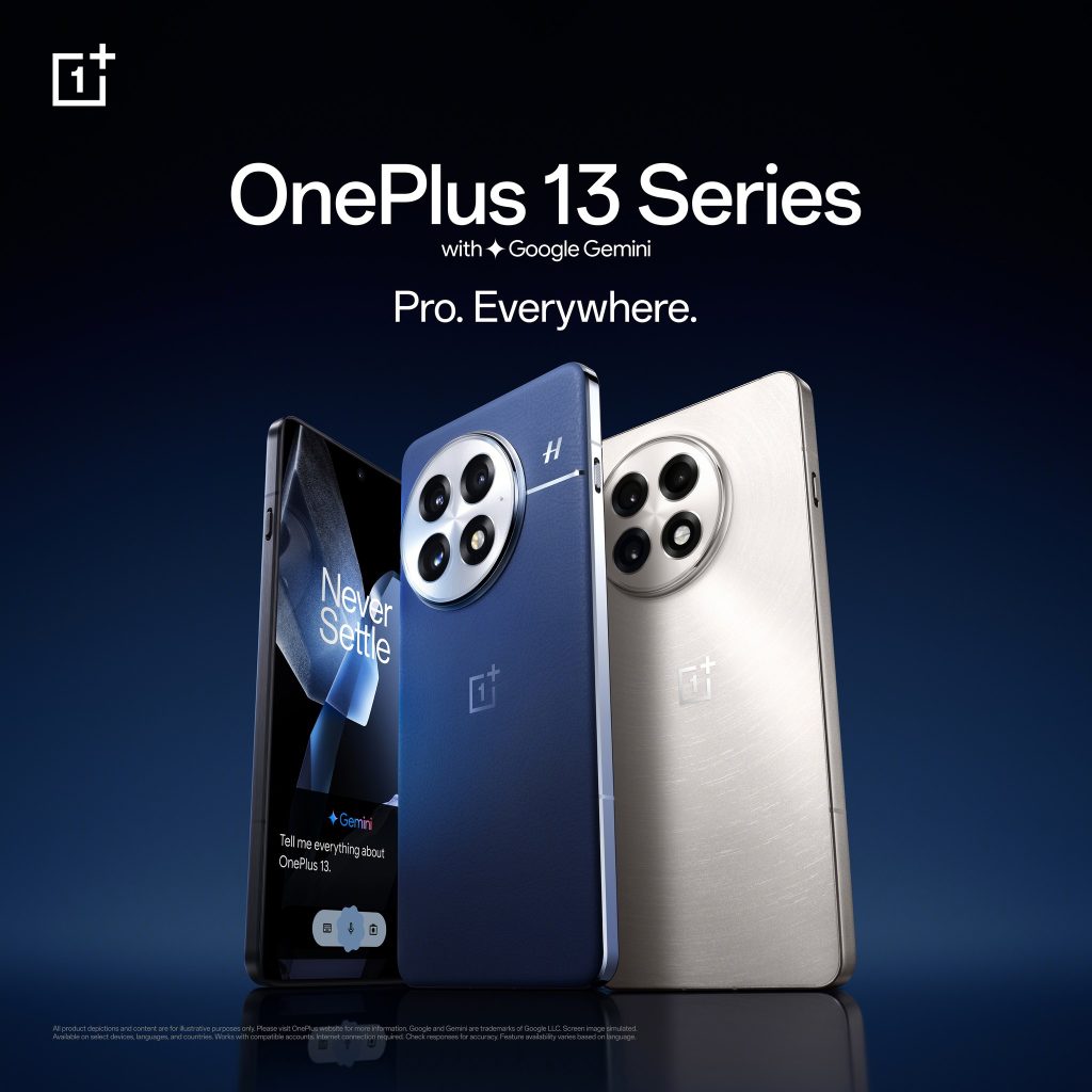 - OnePlus 13s (India, Jun 2025): 6.3″ OLED, RAM 12 GB, storan 256/512 GB, bateri 5850 mAh, dual-cam 50 MP + 50 MP, dibangunkan dengan AI panggilan Google Gemini